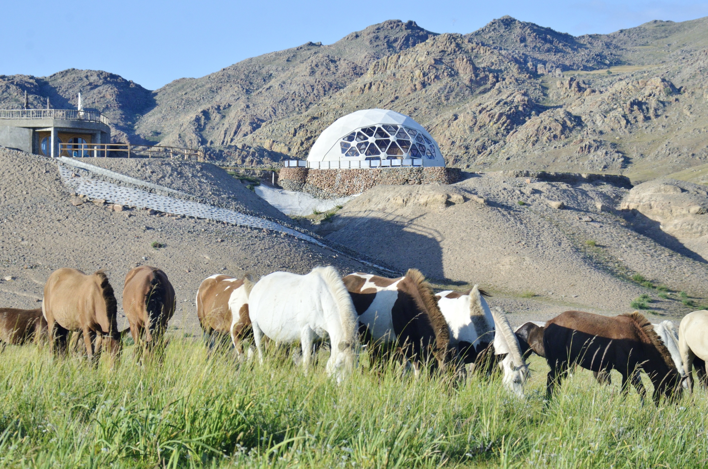 Harganat River Lodge heeft een gezellig restaurant met wijds uitzicht en een Europees-Mongools geïnspireerde keuken waarbij eigen groenten worden gekweekt in de serres en vlees afkomstig is van dieren die buiten op de steppe leven. In de wellnes dome bevinden zich de douches en met rivierstenen gedecoreerde toiletten, alsook een in warm hout afgewerkte sauna met buitenzwembad. Je verblijft in een Mongoolse yurt met modern design, om in alle rust te genieten van het ongerepte landschap rondom.