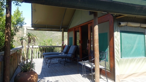 Het private wildreservaat Botlierskop (Afrika) is schitterend gelegen tussen de bergen van Quteniqua en de stranden van de Indische Oceaan. Op het grote terras van de hoofdlodge heb je een adembenemend uitzicht op de vallei beneden. Hier kan je ook lekker relaxen aan de zwembaden. Je slaapt in een luxe safari tent die sfeervol ingericht is met koloniale meubels, hemelbed met klamboe, privé badkamer met een ruim ovaal bad en een douche in de buitenlucht. Iedere tent heeft een privé buitenterras met prachtig uitzicht op de omgeving.