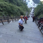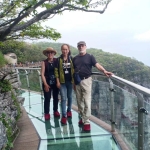 Alsof het nog niet genoeg is valt er boven nog een spannende sensatie te beleven: de Cliff Hanging Walkway. Deze hangende loopbrug, bevestigd aan een klif, hangt 1400 meter boven de grond en dat is erg hoog, geloof me. We zouden niet in China zijn mocht er geen gedeelte van de loopbrug van dik glas gemaakt zijn. Dit stuk loopbrug is erg populair en je ziet er bij momenten de gekste taferelen.