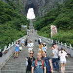 Tianmen Cave is een groot gat dat zich op natuurlijke wijze gevormd heeft in Tianmen Mountain. Geloof het of niet, maar mensen in wingsuits en straaljagers zijn door deze nauwe opening gevlogen. Als je wil kan je de 999 trappen van de Deur van de Hemel naar beneden doen. Anders neem je verschillende lange roltrappen.